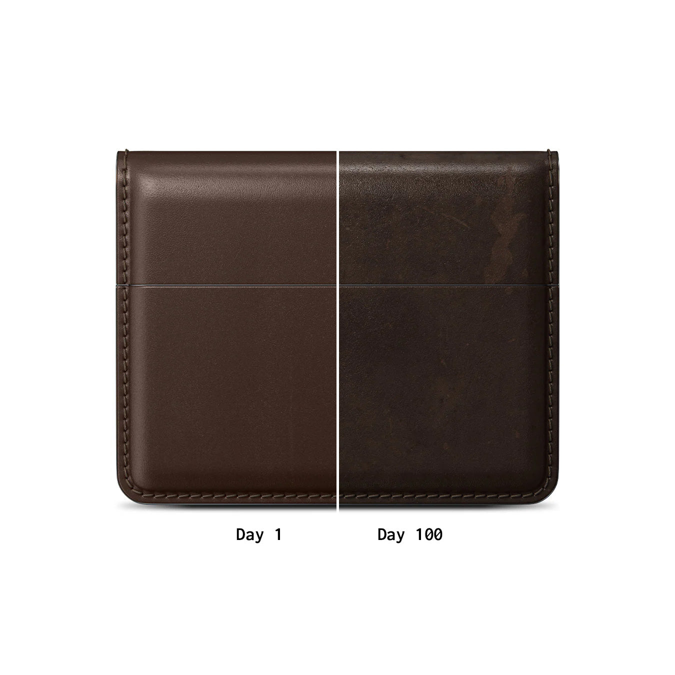 毎日使い込むことで、革は傷や擦れを取り込みながら、美しく深みのある艶をまとっていく。それは、あなただけの唯一無二の表情。使い始めの一日目から百日目まで、革は時を重ねて味わいを増していく――擦り減るのではなく、育っていく。風格と個性、そのすべてがあなたの手の中で育まれる。