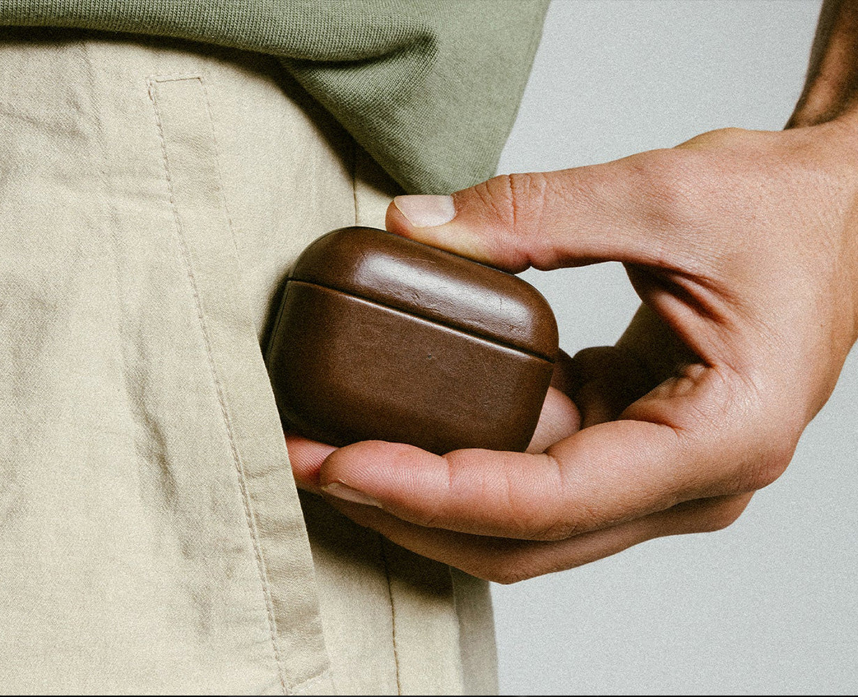 Horween Leatherと柔らかなマイクロファイバーが織りなす上質な手触り。Modern Leather Case は、AirPods pro3のフォルムを美しく引き立て、大切なデバイスをしっかりと守る。手に馴染むフィット感と洗練された二重構造が、落下や傷のリスクからAirPods pro3を包み込み、使うたびに特別な時間を演出する。