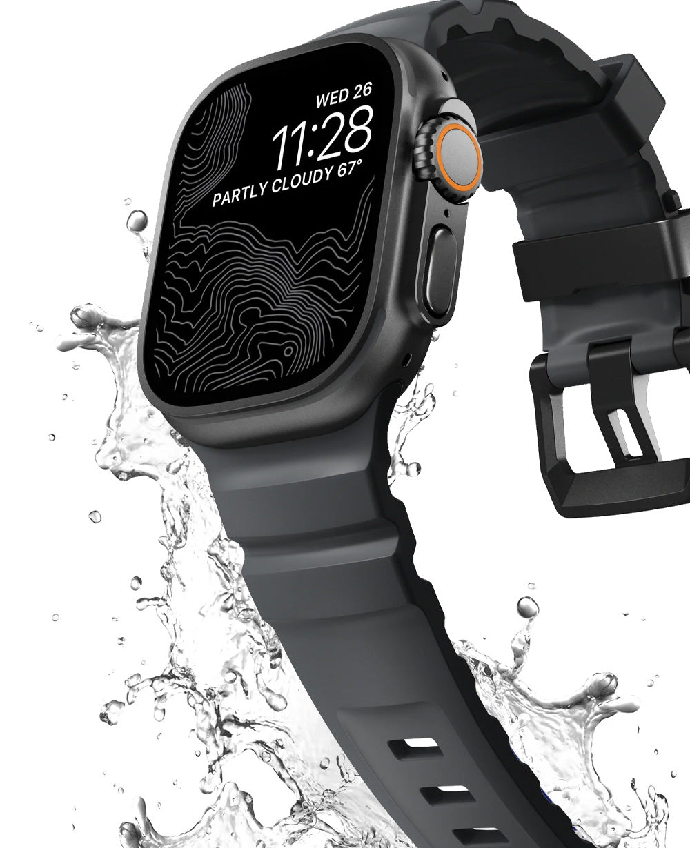 Rocky Point Bandの超タフなFKMボディは、どんな試練にも耐え抜く圧倒的な強さを誇る。100%防水で、どれほどの衝撃を受けても決して破れない。過酷な冒険の果てまでも、ともに歩み続ける究極のパートナー