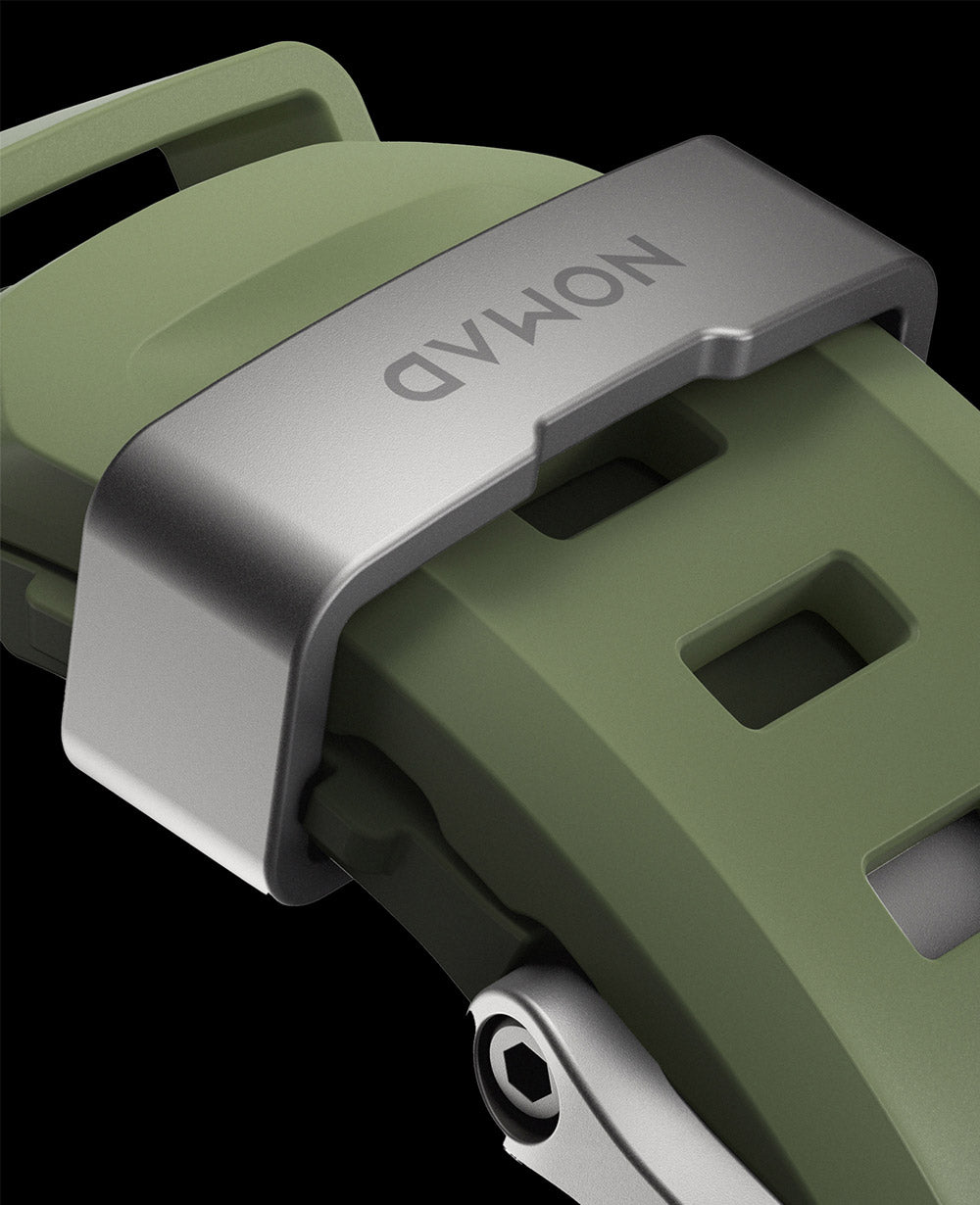 Rocky Point Bandのバックルとベルトループには、高品質チタニウムを採用。比類なき強度と軽さを誇る。NOMADの精密な加工技術が生み出す、究極の仕上がり。