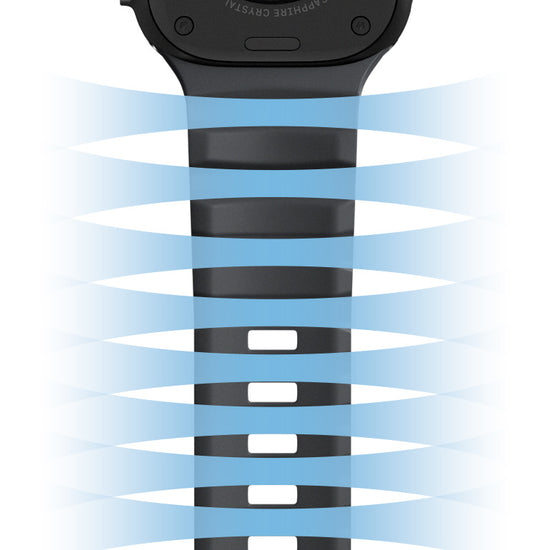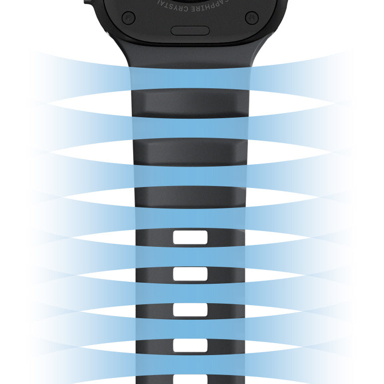 バンド裏面の通気チャンネルと全長に配置された調整用ホールにより、優れた通気性と柔軟性を提供します。