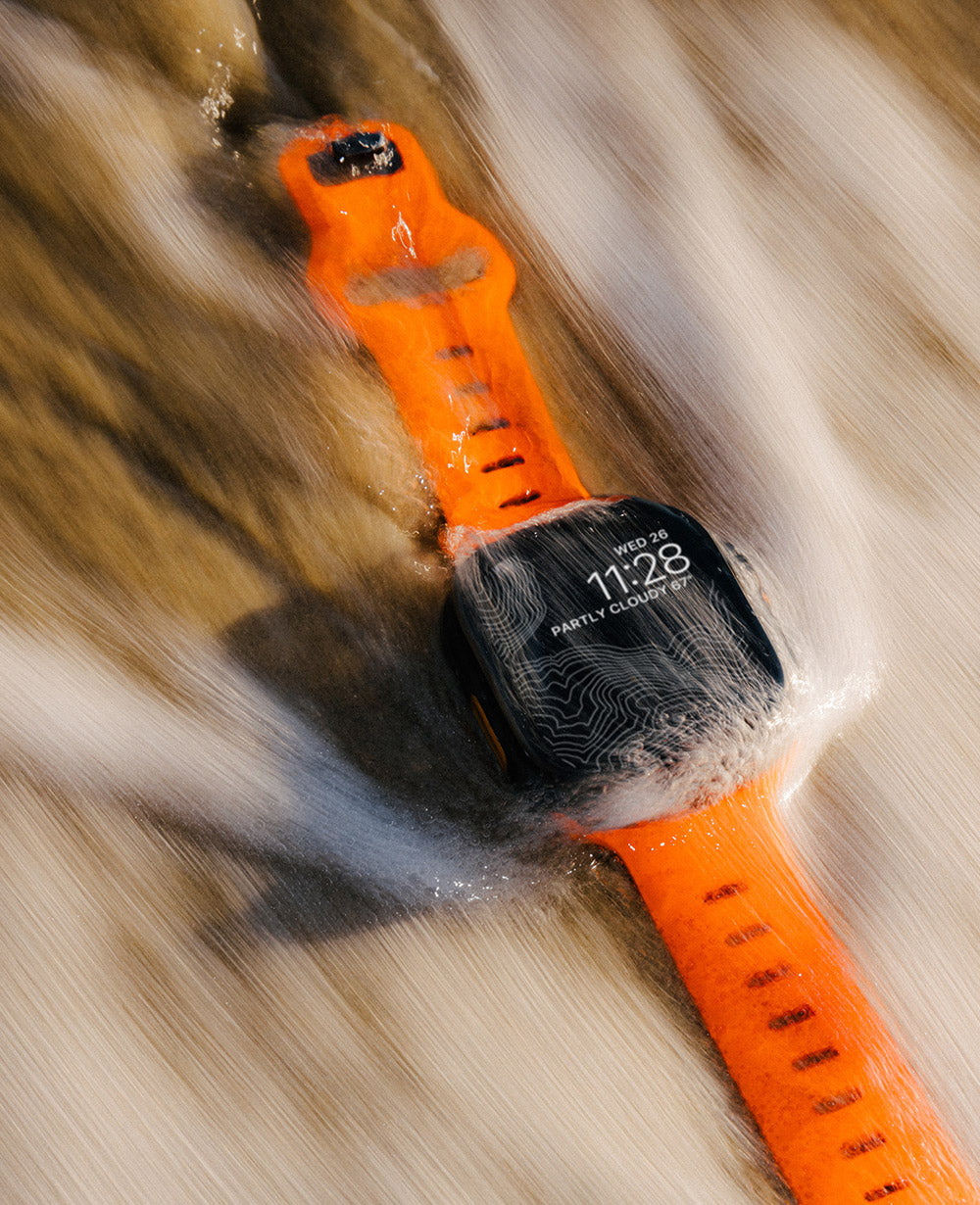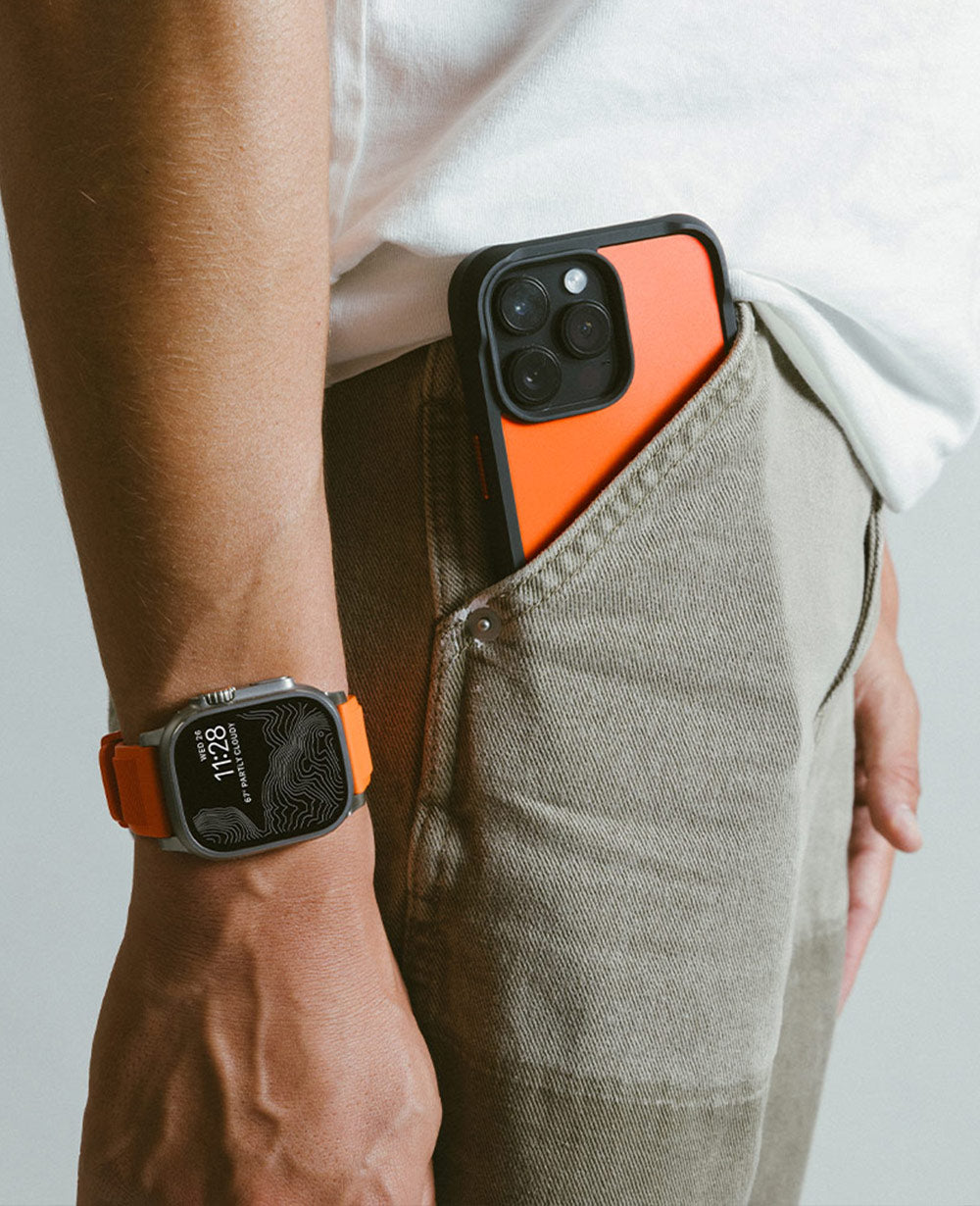 Sport Bandは、Apple Watchにモダンでアクティブな印象を与え、オフィスからアウトドアまでシームレスに馴染むデザインです。軽量で通気性に優れた設計により、一日中快適に着用でき、ロープロファイルのピン&タック機構がしっかりとした装着感を提供します。