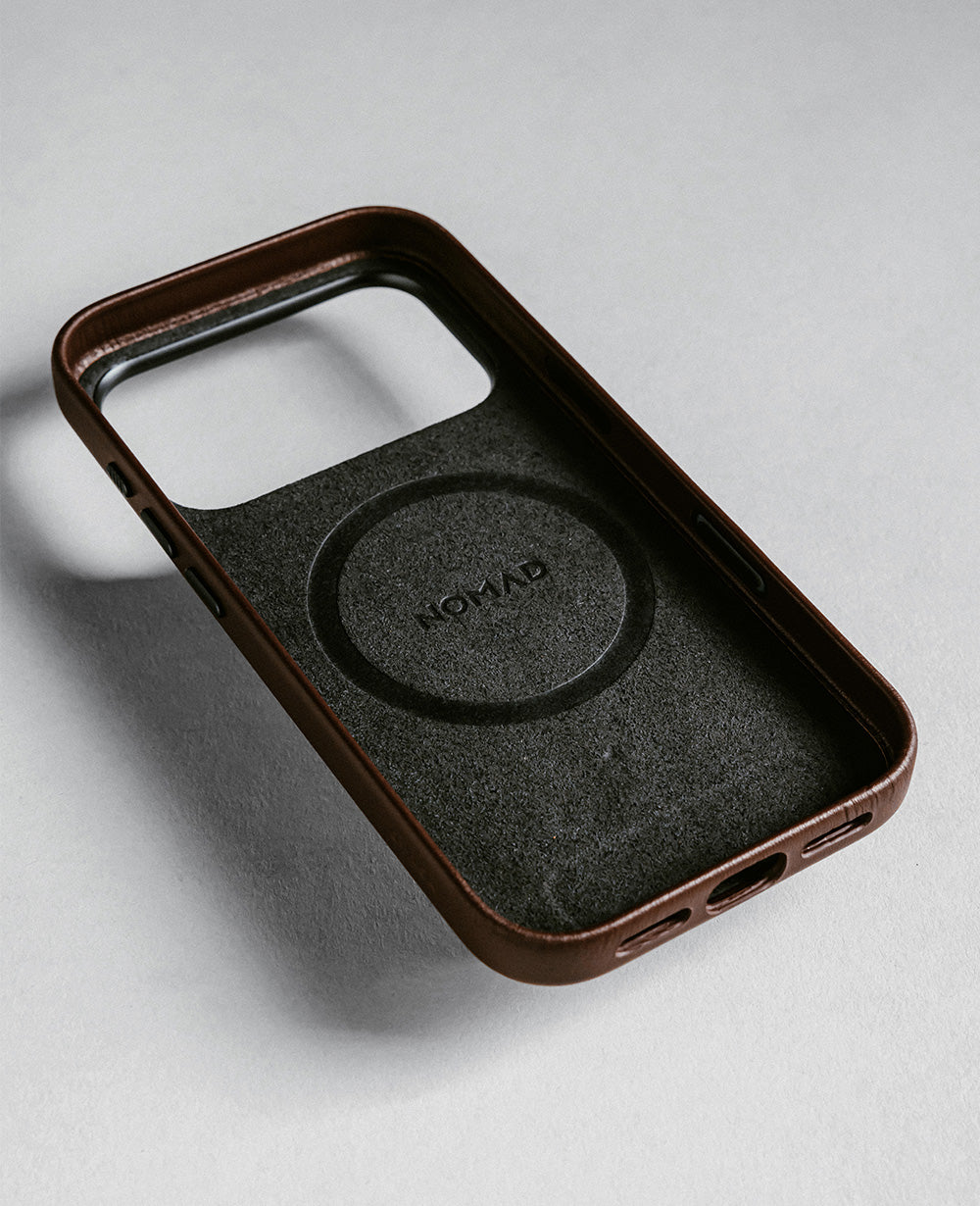 ネオジム磁石を精密に配置した構造により、Modern Leather Case はMagSafe充電器やアクセサリとの完全なる一体化を実現する。